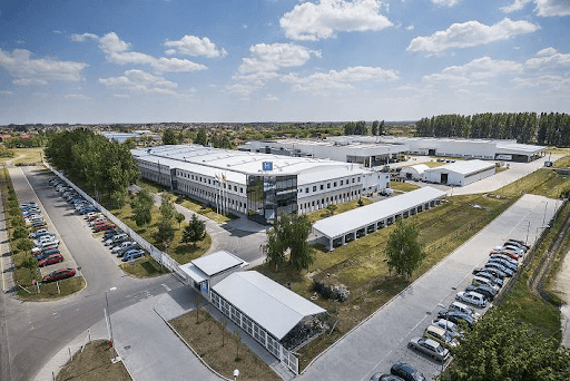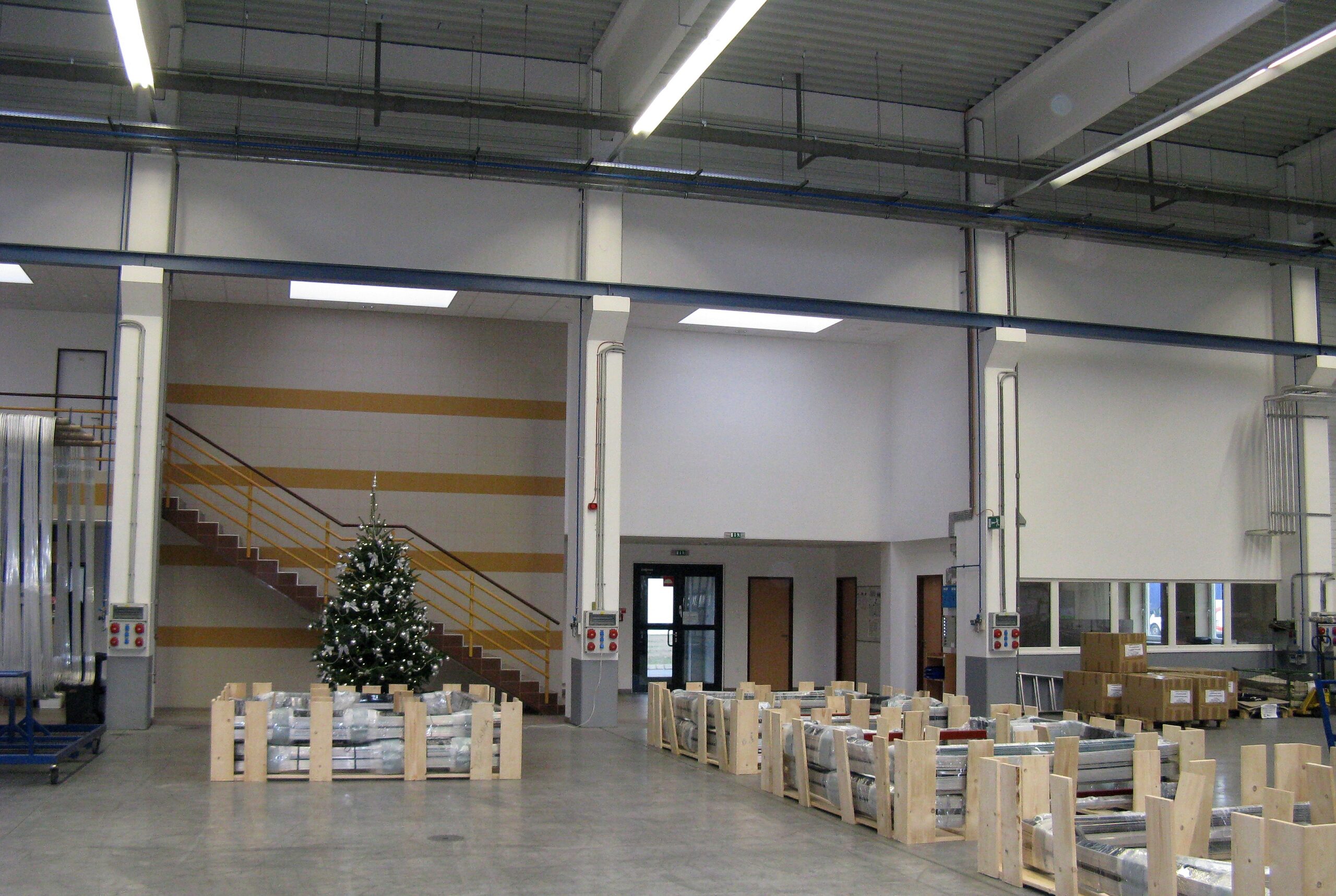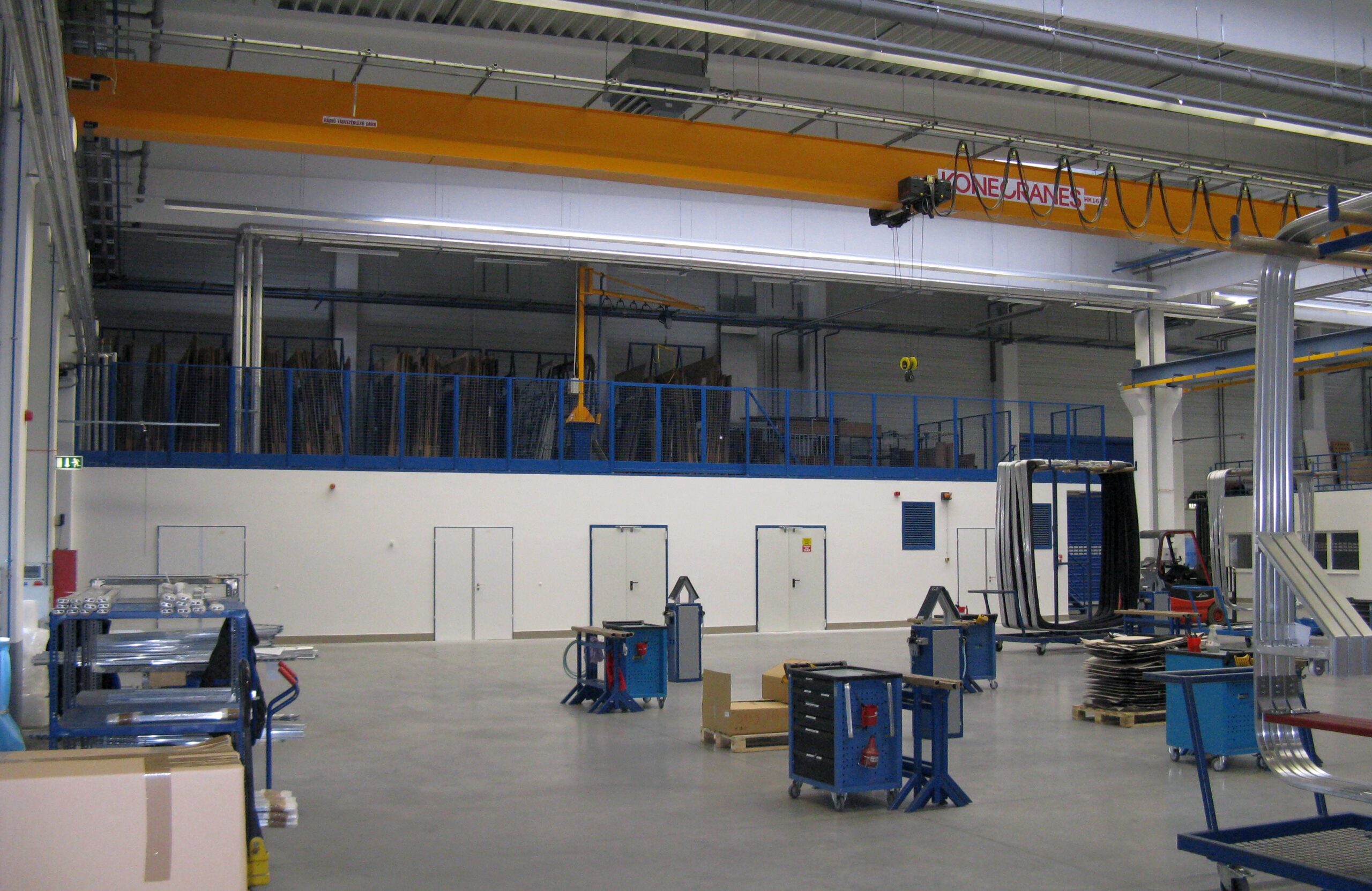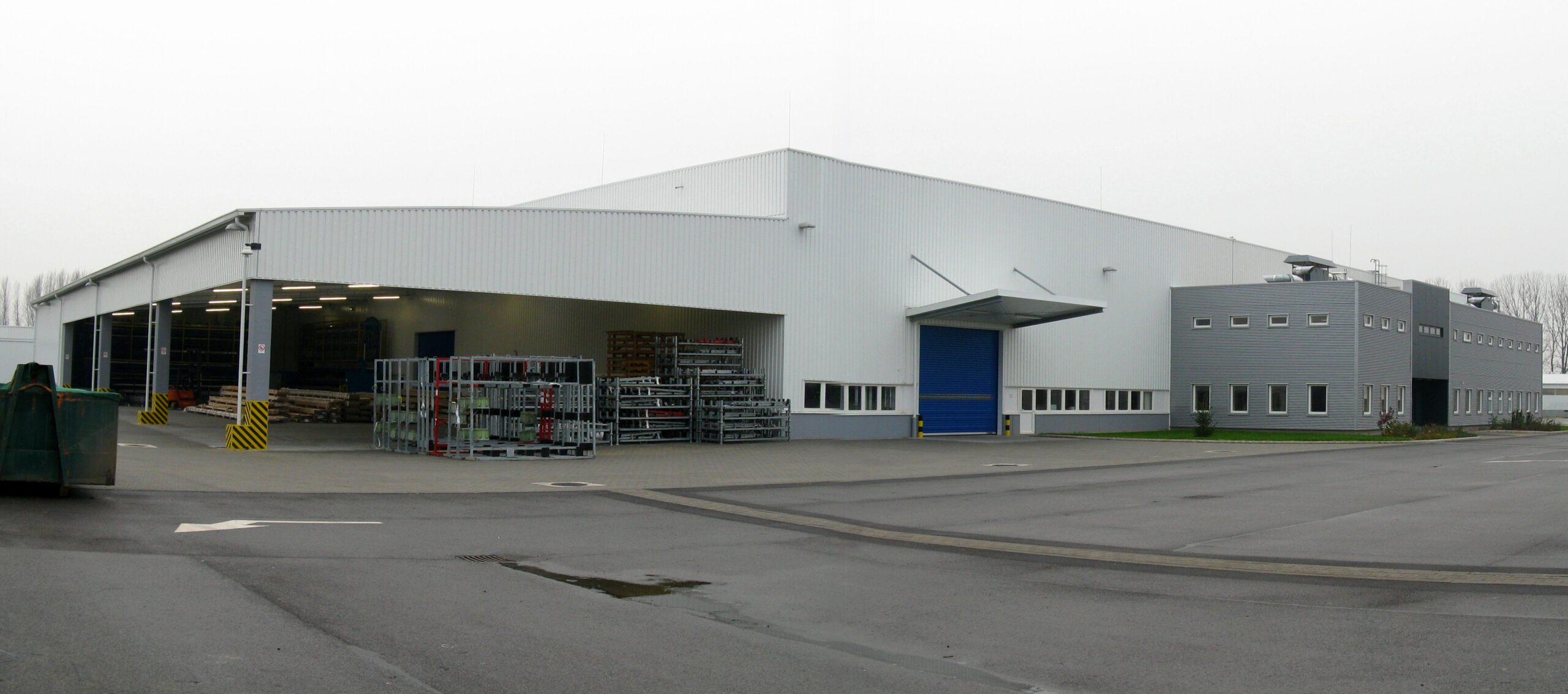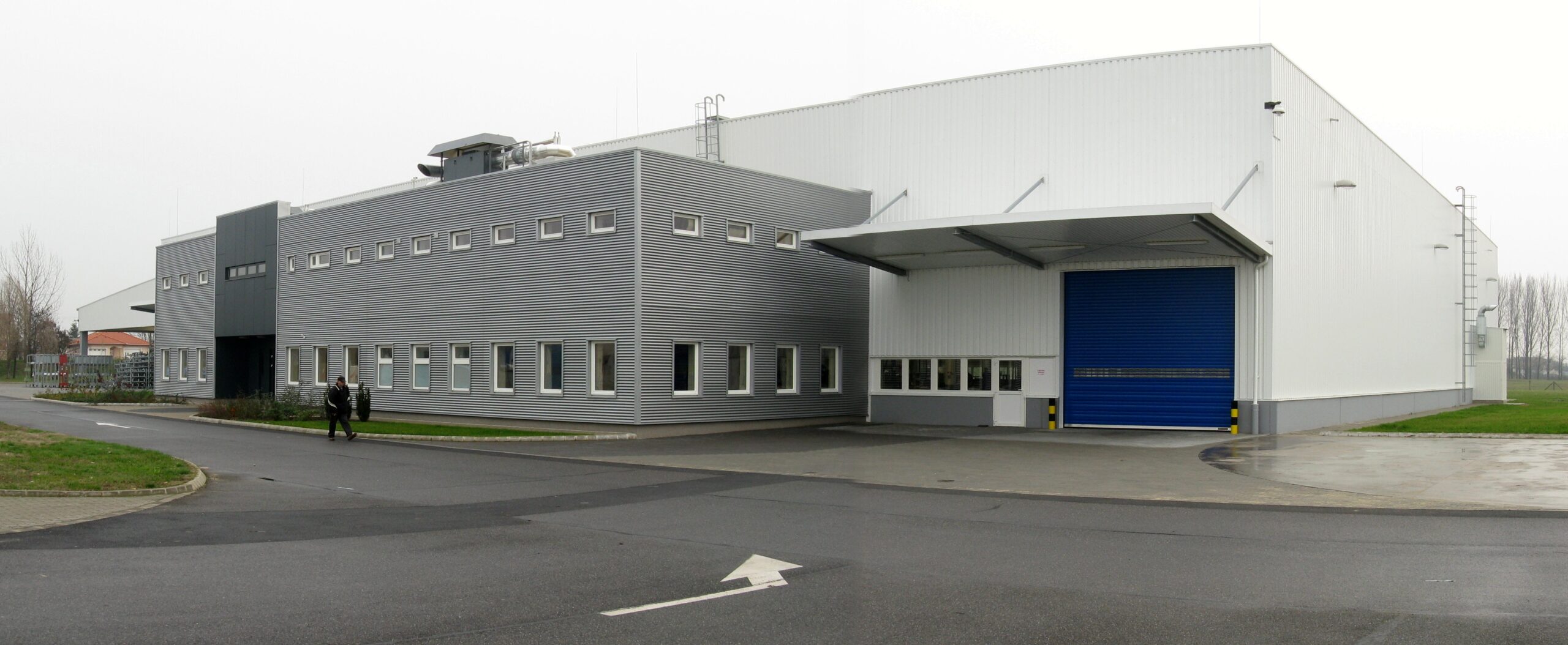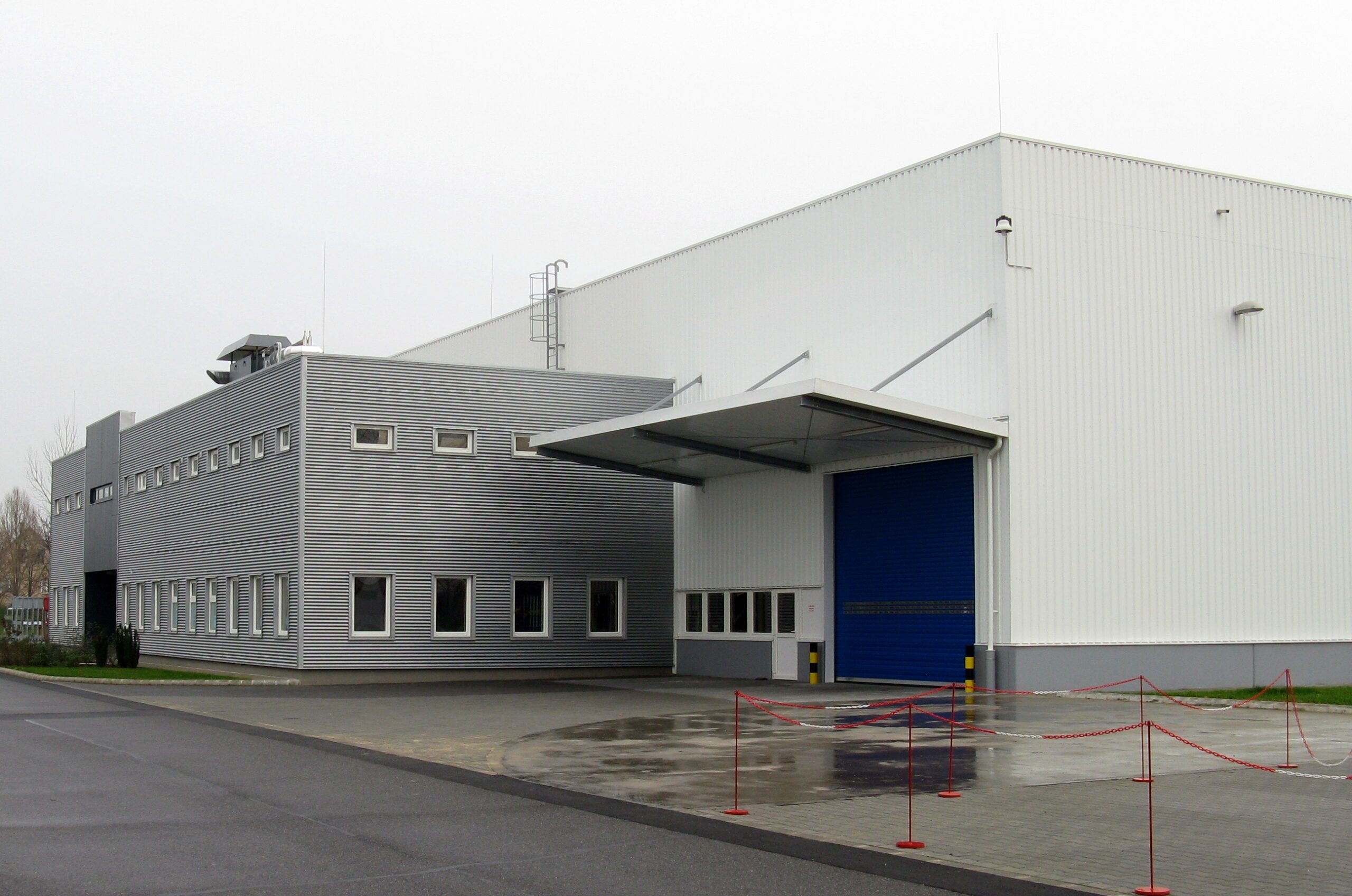 A Hübner-H Kft. területén egy gyártócsarnok és irodaépület volt, amikor megbízták az irodánkat a telephely hosszú távú bővítésével. A tervezés több ütemben folyt, koncepciótervet készítettem a telephely 15.000 m-es tovább bővítésére II. és III. ütemben. A II. ütemben tervezett csarnokot és irodaépületet a koncepció tervtől egészen az átadásig végigvittem, azonban a szülési szabadság miatt a további bővítést Ráskai Ferenc tervezte tovább. A csarnoképület az I. ütemben megépült főépület beépítési vonalát folytatja. Az elhelyezéskor döntő szempont volt, hogy a továbbiakban egyszerűen bővíthatő és továbbépíthető létesítmény jöjjön létre. A II. ütemben megépülő csarnokban a fém megmunkálással, szereléssel kapcsolatos technológia kap helyet. A szociális épület funkcionálisan kapcsolódik a csarnokhoz, de szerkezetileg és formailag elválik tőle. A színek alkalmazásával is arra törekedtem, hogy a csarnok és a szociális blokk tömege elkülönüljön. A gyártócsarnok 2 db 66 m hosszú, daru fogadására alkalmas hajóból áll, mindkét hajó 24 m széles, 2 db 3,2 t-ás daru előkészítéssel. A keleti homlokzatot fedett-nyitott rakodótér zárja. A csarnok északi oldalán helyezkedik el a fejépület, mely irodákat, étkezőt, szociális helyiségeket tartalmaz.