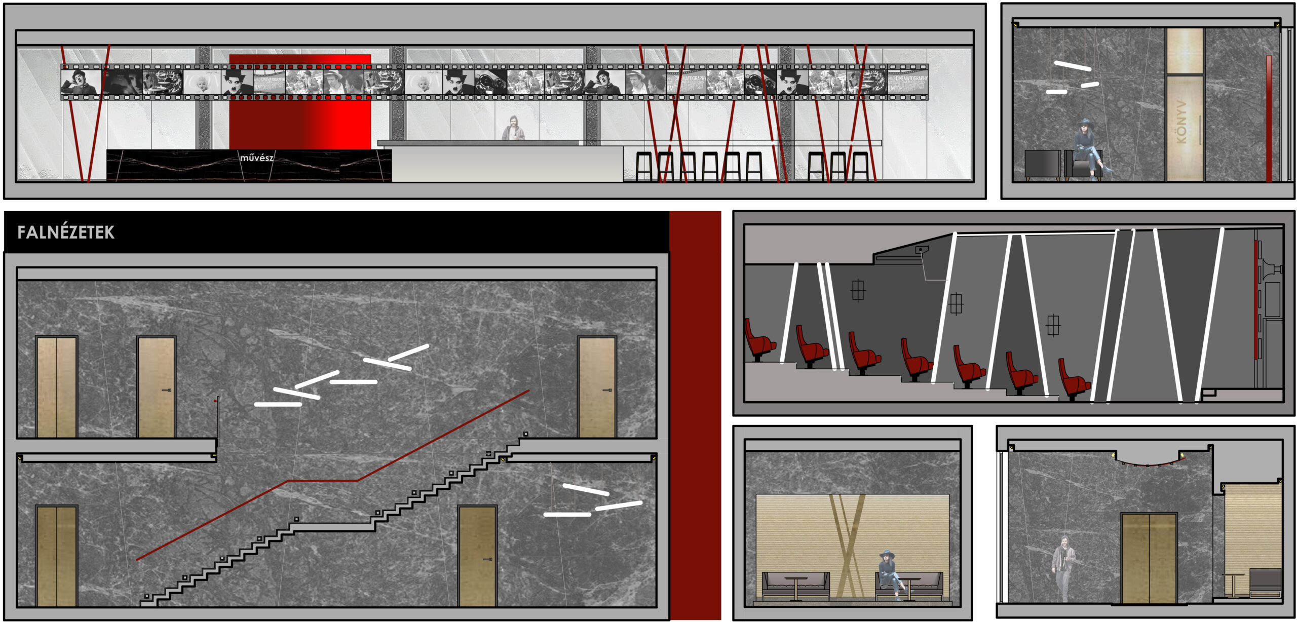 Győr történelmi belvárosában, a sétáló utcában található a foghíj épület. Az 1970-es években épült ház egyszerű architektúrája sematikus, tiszta rendszerű. A belsőépítészeti koncepció kialakításakor alapvető kiindulópont volt számomra a tiszta térszervezés megtartása és az elegáns időtálló anyagok használata. Célom az volt, hogy a burkolatok, a színek, a fények, a multimédia felületek bevonzzák és itt tartsák azt a közönséget, akiket a művészfilmek világa érdekel, és a belsőépítészeti kialakítás szerethető legyen azok számára, akik a hetvenes évek újhullámján nőttek fel, de az egyetemisták is megtalálják azt a hangulatot, ami miatt szívesen kávéznak, moziznak, találkoznak itt.